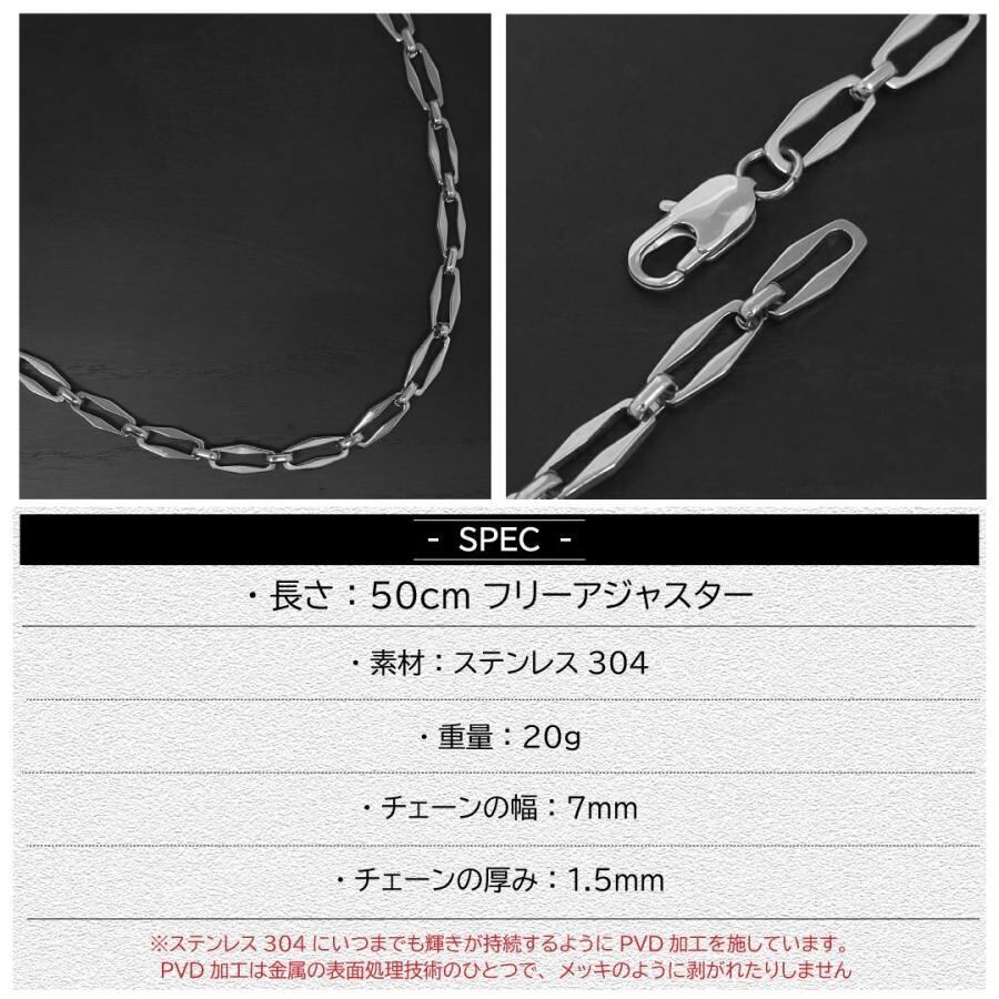 Graner メンズ ヘキサゴン ネックレス シルバーカラー 50cm・7mm(GR-001)