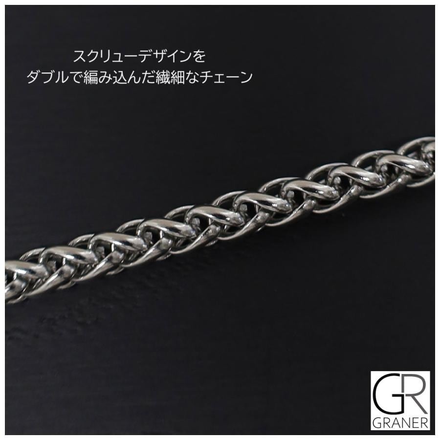 Graner メンズ ダブルスクリューチェーン ネックレス シルバーカラー 50cm・3.5mm(GR-005)