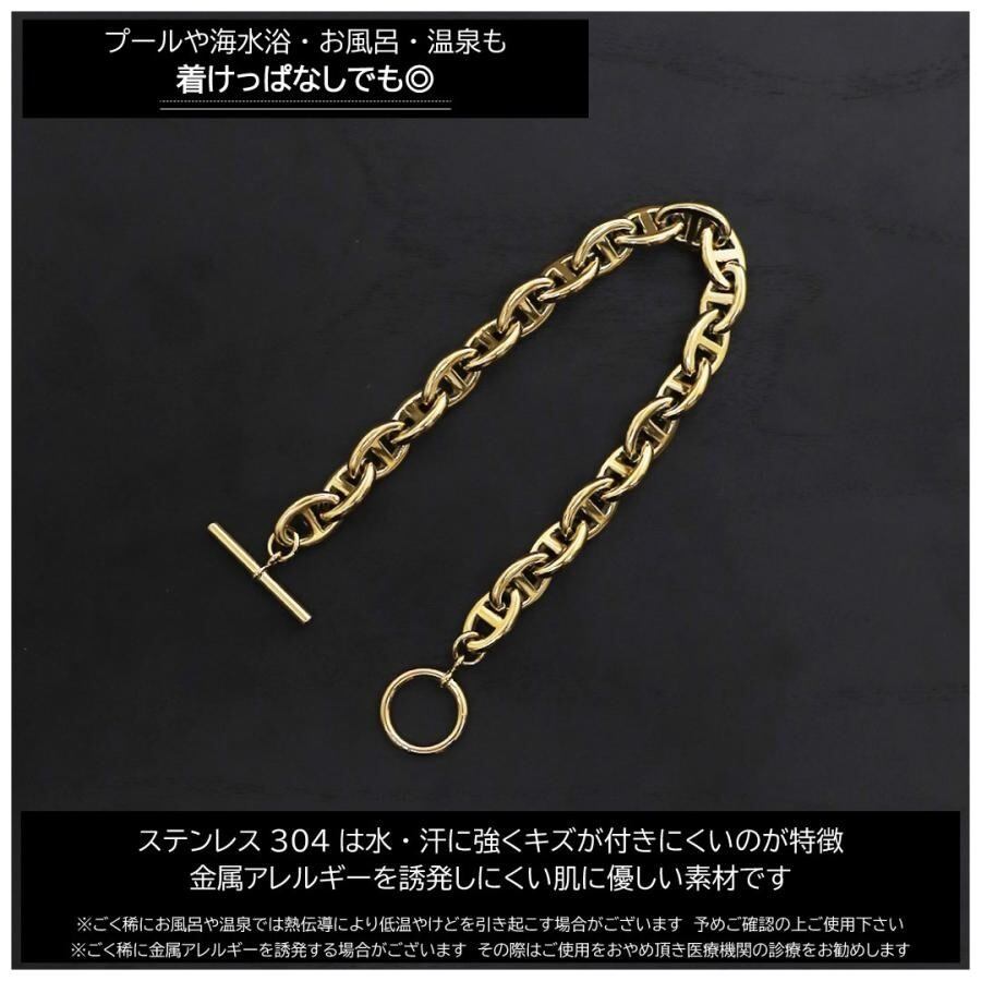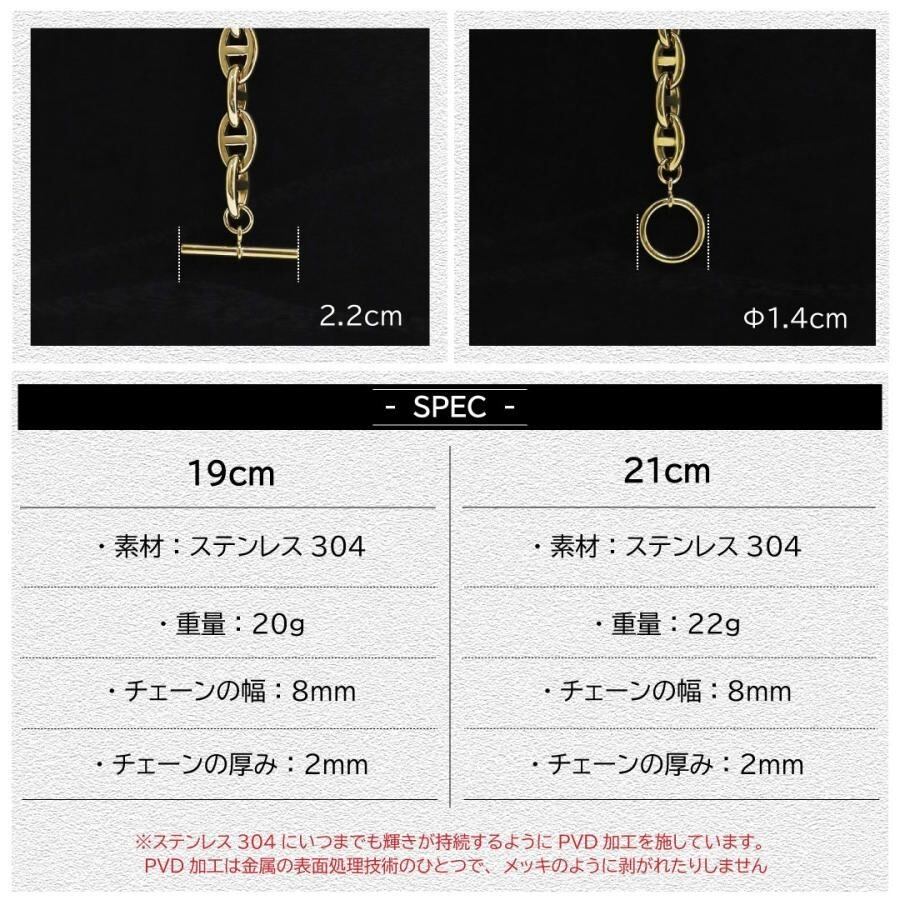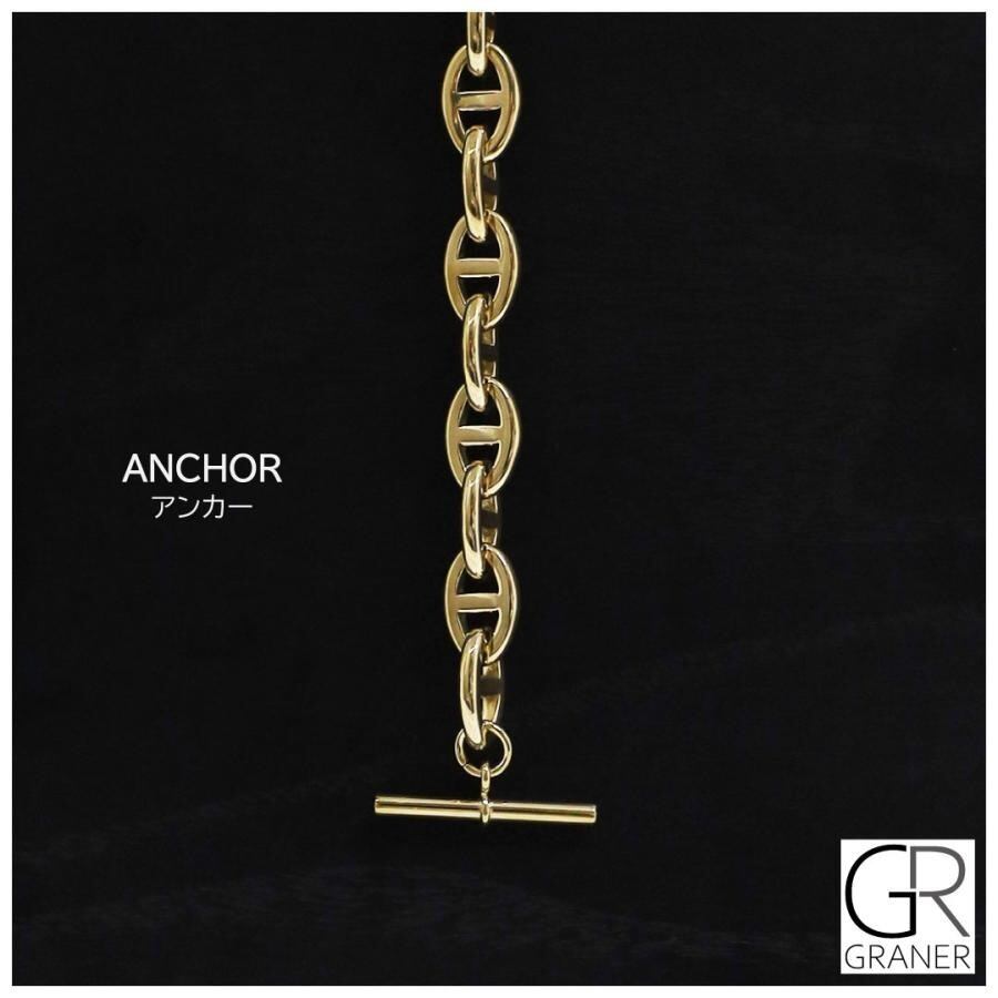 Graner メンズ アンカーチェーン ブレスレット ゴールドカラー 19・21cm(GR-103・104)