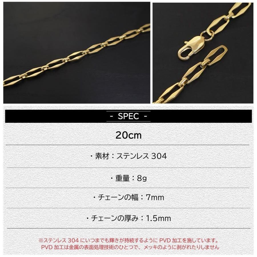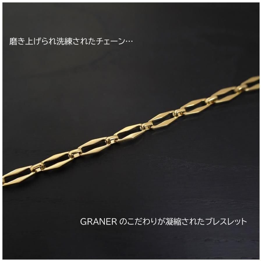 Graner メンズ ヘキサゴン ブレスレット ゴールドカラー 20cm・7mm(GR-110)